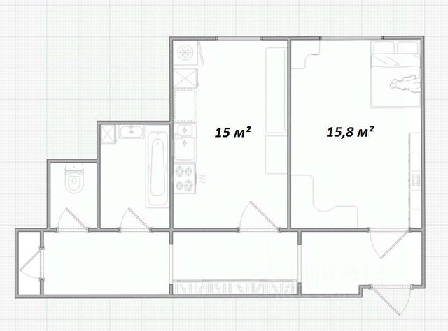1-комн.кв. · 32,1 м² · 2/5 этаж