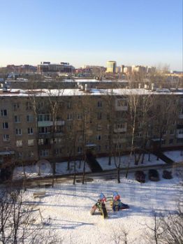 Общая площадь составляет 63,5 м² (мои измерения), из которых 40,6 м² жилая площадь. Дополнительно имеется большой закрытый тамбур на три квартиры, примерно 6 м², удобный для хранения вешалок, обуви, колясок и прочего. Также есть широкая застекленная лоджия площадью 12 м², отделанная плиткой, и просторная, на две комнаты. Все три комнаты изолированы и имеют размеры 19, 9 и 13 м². Кухня площадью 7 м² оснащена вместительным зимним холодильником под подоконником. Санузел раздельный, облицован плиткой, с новым унитазом, электрическим счетчиком, новыми пластиковыми трубами и радиаторами. В доме установлены домофон и новый лифт. Окна с экологическими деревянными рамами выходят на две стороны, обеспечивая панорамные виды: с одной стороны на детскую площадку, ул. Нахимова и водонапорную вышку до горизонта, с другой на ул. Московскую и Проспект Мира, без окна в окно.