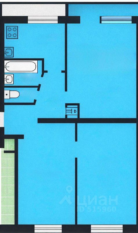- Общая площадь: 61,5 м²